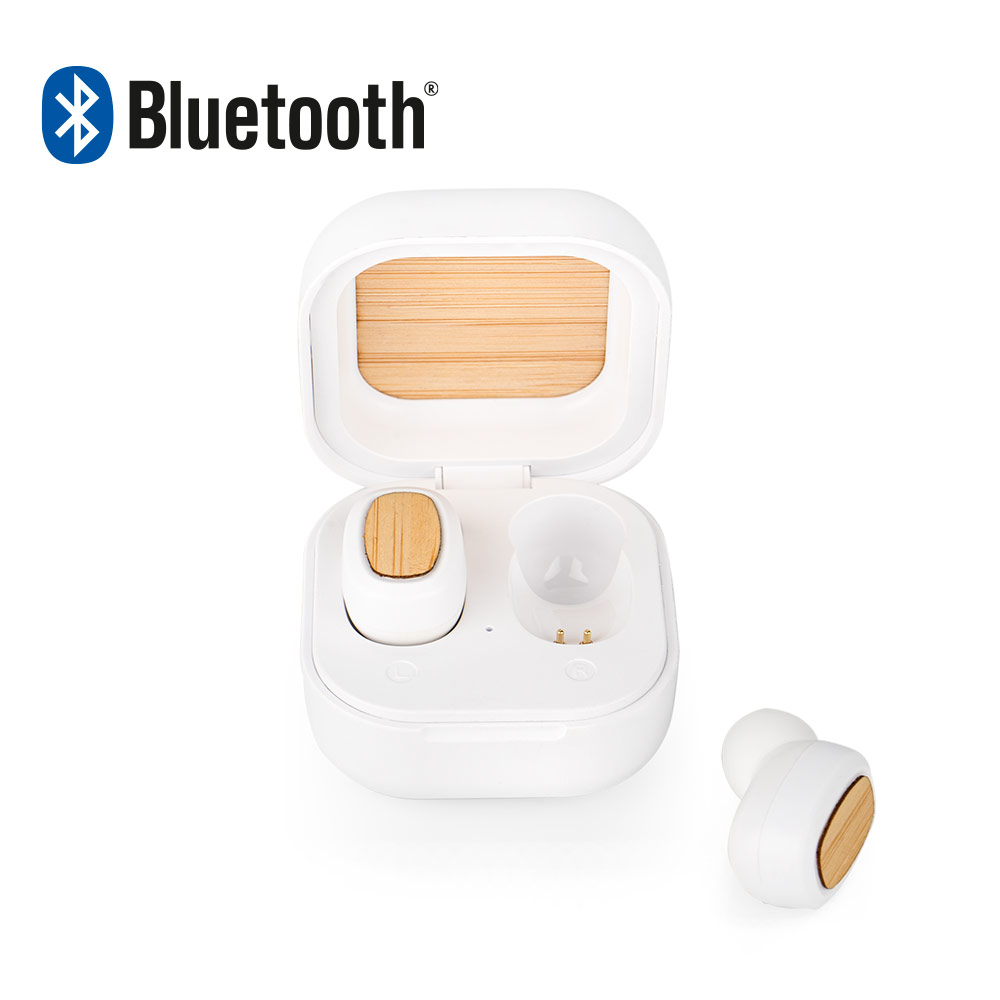 Audífonos Bluetooth 5.0 con diseño ergonómico. Incluye botón táctil en el auricular que permite controlar las acciones con facilidad. Posee unabase de carga con diseño a juego y cable Tipo-C incluido.