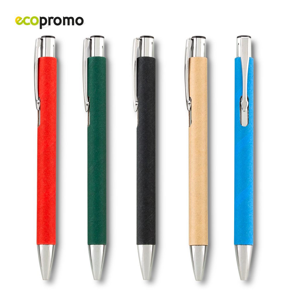 Boligrafo con partes plasticas y cuerpo de carton Clip metalico Mecanismo push Medidas: 14 cmMarca: 4 cm / TampografiaVenta minima y en multiplos de caja de 50 unidades Ficha Tecnica