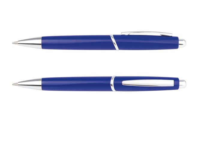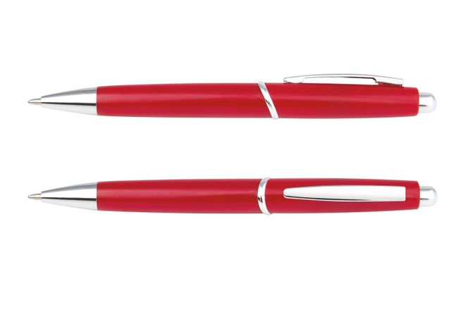 Bolígrafo con sistema retráctil en la parte superior. Con clip metálico.