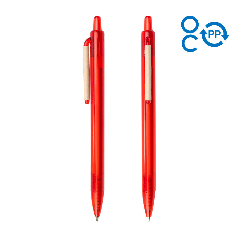 Bolígrafo elaborado en plástico PP recuperado del océano, con clip en cartón reciclado y sistema retráctil.