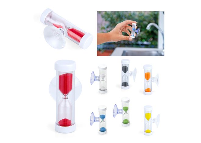 Reloj de arena con una duración de 4 minutos. Incluye ventosa.