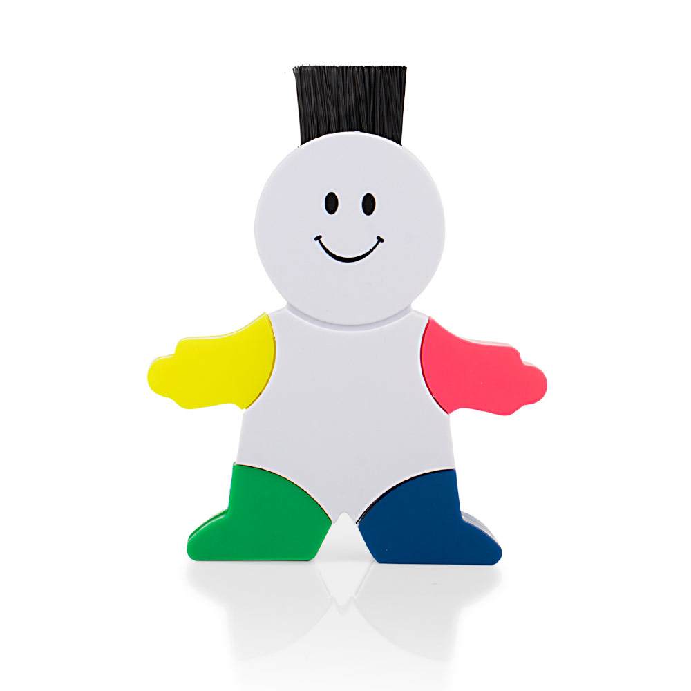 Juego de 4 resaltadores de colores con base en forma de niño y cepillo para limpiar el teclado.